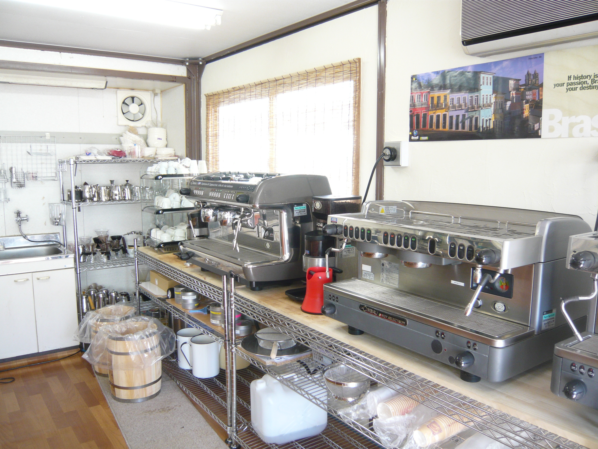 2020年2月 新たなショールームが完成 ●焙煎工場内ショールルーム(焙煎太郎作) エスプレッソマシンを使って、ラテアートの練習ができます。 コーヒーの基礎から、ご指導致します。 ●本社ショールーム(焙煎太郎作) 2016年1月、もうひとつショールームオープン!